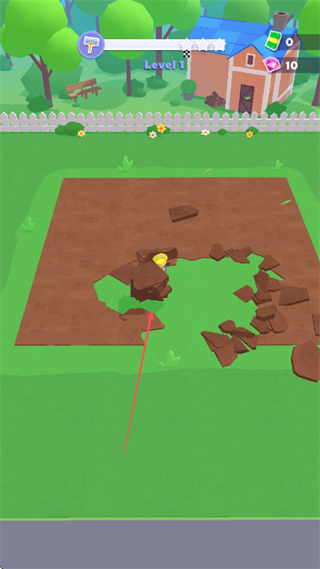 1、在Level1中,操控角色挖掘土地,击碎泥土块,收集其中的资源。