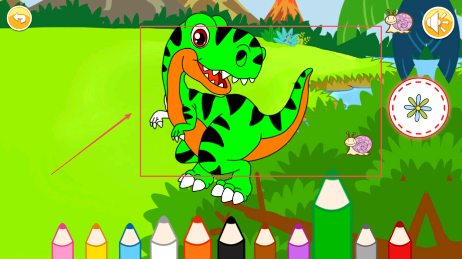 2、使用丰富的调色板工具仔细挑选喜欢的颜色搭配方案,为恐龙图案的各个部位涂上个性化的色彩展现独特创意和审美能力表现。