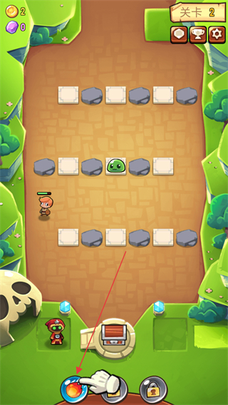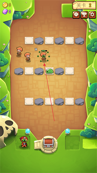 2、进入关卡如关卡2,操控升级后的怪物在地图中移动,攻击敌方小人单位,阻止其靠近己方区域。