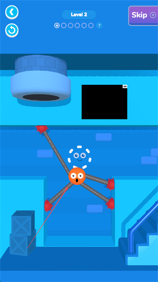 1、在Level2中,操控橡皮人利用四肢吸附墙面移动,收集上方的白色圆圈道具。
