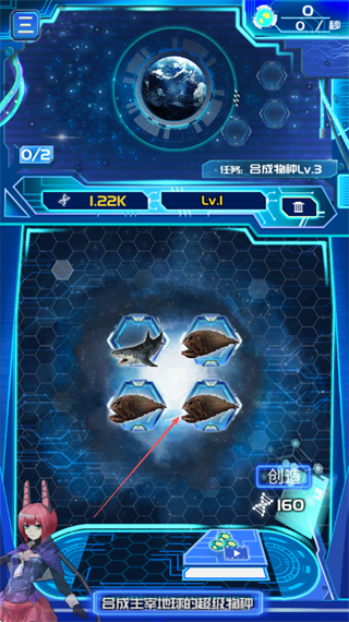 1、点击相同的鲲进行合成,生成更高级的物种。