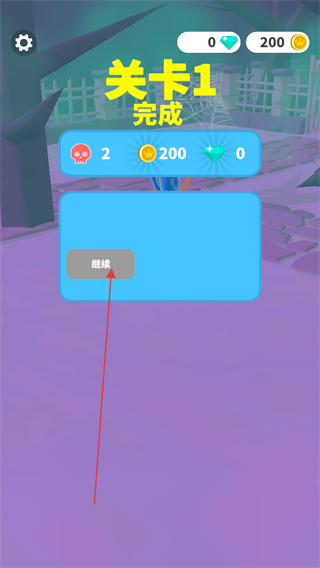 3、击败所有对手后,完成关卡目标,屏幕会显示关卡1完成等通关提示。