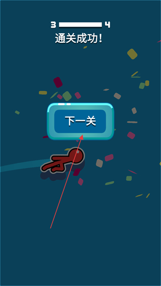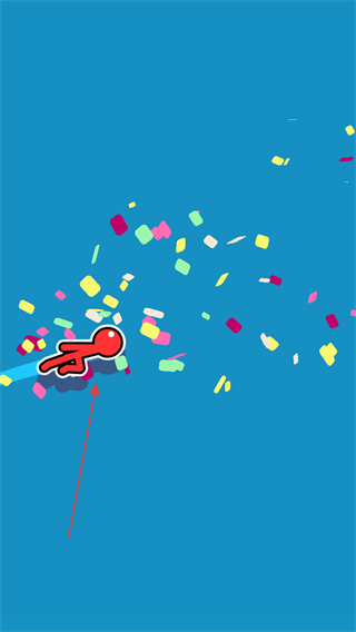 3、尽量让火柴人以较快速度撞击终点线,成功后会出现彩色纸屑庆祝,达成通关条件。