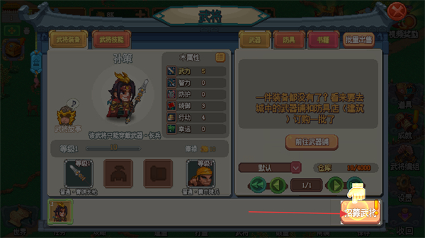 4、在武将界面查看武将的属性和装备,通过“招募进化”等功能提升武将战力,为攻城略地等战斗做好准备。