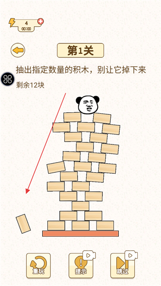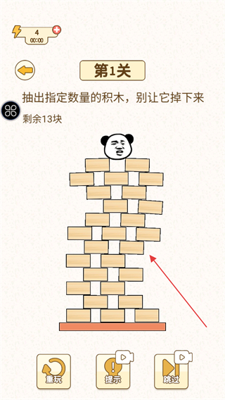 4、持续抽取积木,直到完成指定数量的抽取任务,顺利通过关卡。