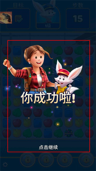 3、持续消除元素,直到完成目标要求,触发“你成功啦”的通关提示。