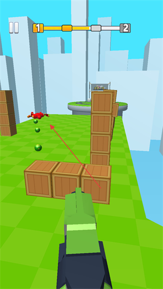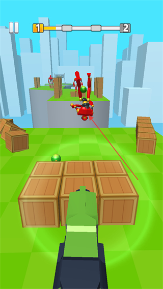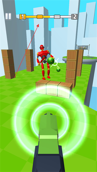 4、将红色机器人彻底击倒,使其掉落绿色球体,完成本关挑战。