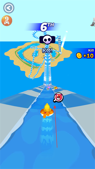 2、利用道具如红色攻击道具攻击其他选手,将其KO,可获得金币奖励如+10金币。