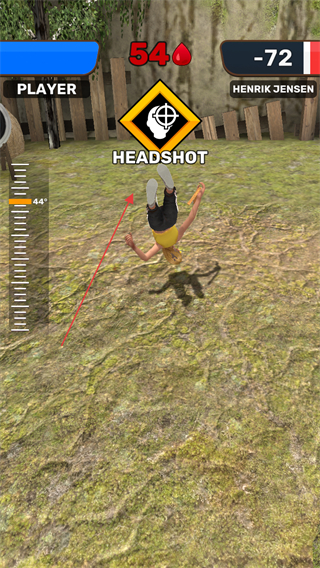 3、释放弓箭,攻击敌方角色,尽量瞄准头部以造成爆头伤害如HEADSHOT。