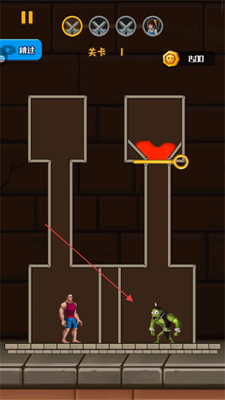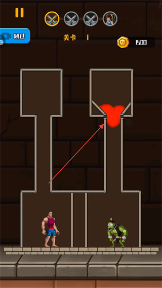 2、操控红色液体流动,使其流向怪物区域,利用液体消灭怪物。