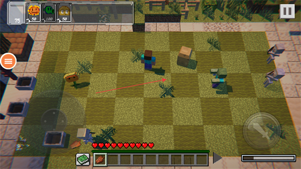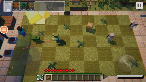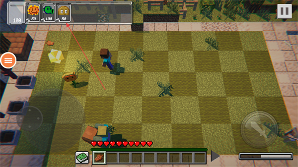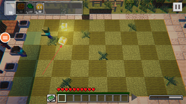 1、收集场景中的黄色方块资源,用于种植和升级植物。