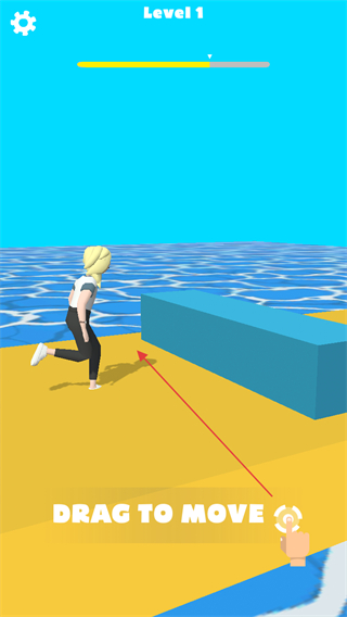 1、拖动屏幕控制角色移动,在Level1的跑道上躲避障碍前行。