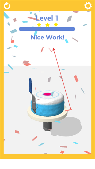 3、完成蛋糕制作后,若达到关卡要求,会显示NiceWork!提示通过关卡,有彩带庆祝。