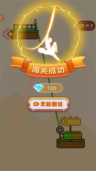 4、当收集的小人数量达到目标如20/20,即可闯关成功,还能选择奖励翻倍获取更多奖励。