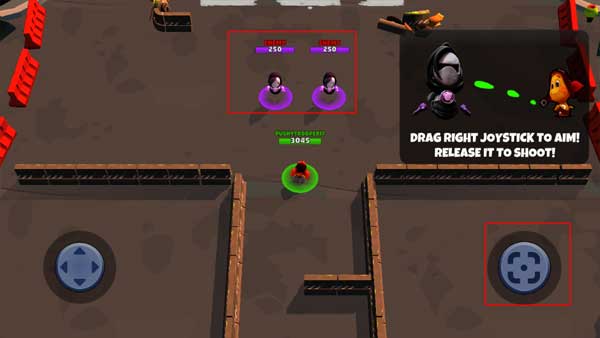 1、使用左侧方向键控制角色移动走位,右侧按键分别对应飞镖射击、导弹发射和颜料喷射功能。