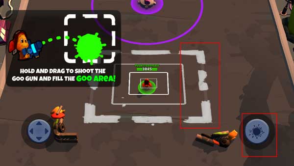 4、持续按住粘胶枪按钮并滑动控制方向,将标记区域的每个角落都填满颜料即可完成关卡目标。