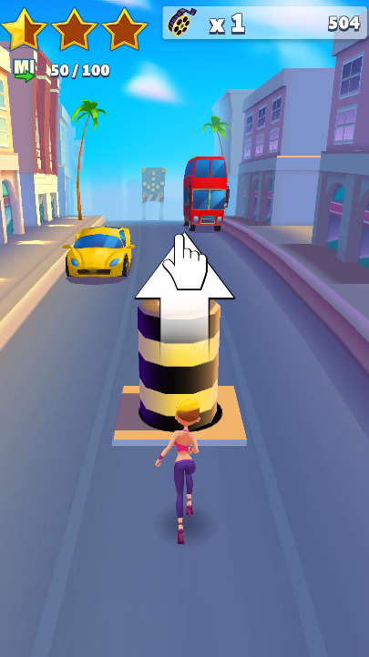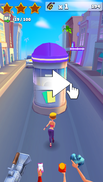 2.好莱坞跑酷的操作非常简单,玩家通过上下左右的滑动屏幕来控制角色改变移动轨迹和翻越或者滑过障碍物
