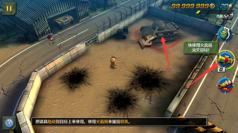 4、拖动右侧火箭筒图标瞄准敌方单位目标,释放强力火力消灭威胁目标任务。