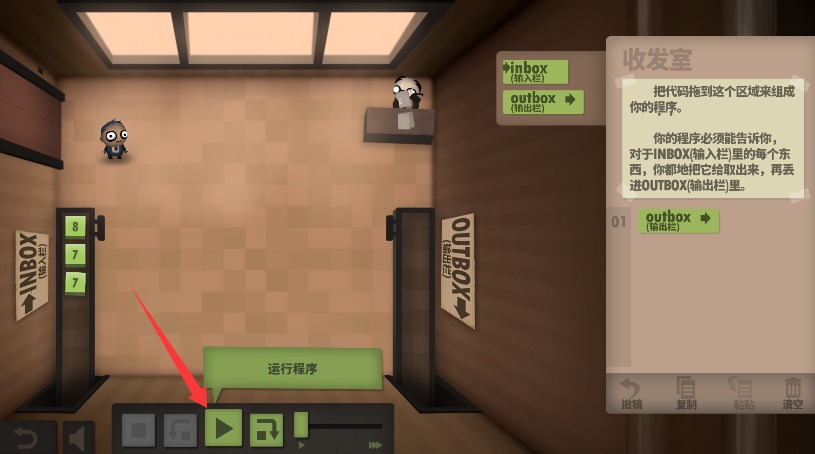 每层楼的布局(或谜题)目的是为了复制一个简单的计算机。比如游戏里会有大波箱子(代表数据和函数)来到你这一层,左边有个收件箱,右边有个发件箱,玩家要做的就是让办公人员提交正确的箱子(一次一个),而且必须用正确的顺序。左右中间还有几个槽,可以储存一下箱子留着后面再用。