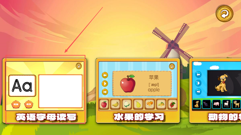 1、首先进入游戏主界面选择适合的学习主题开始体验,从字母认知、数字学习或颜色辨别等内容中挑选感兴趣的部分开启英语启蒙之旅。