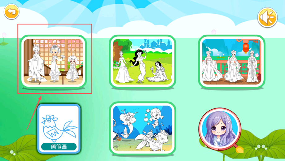1、首先需要打开游戏并仔细浏览各种精美的公主主题模板,从中选择最感兴趣的场景开始涂色创作体验过程。