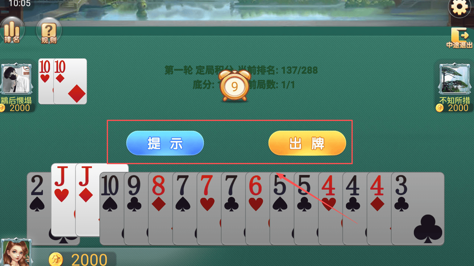 2、作为新手需要了解基本出牌规则,例如由持有红桃三的玩家先出手,若无则顺延至红桃四拥有出牌权。