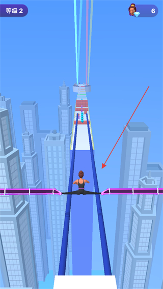 1、在等级2跑道上收集紫色鞋跟,增加高跟鞋高度,为后续挑战做准备。
