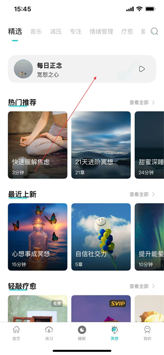 -练习页新增今日冥想进度环,定制练习目标,放松减压,助眠修心;