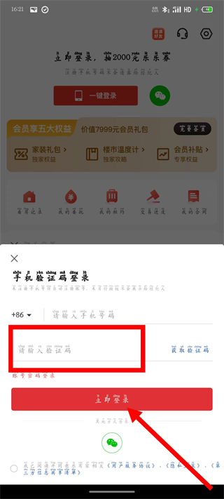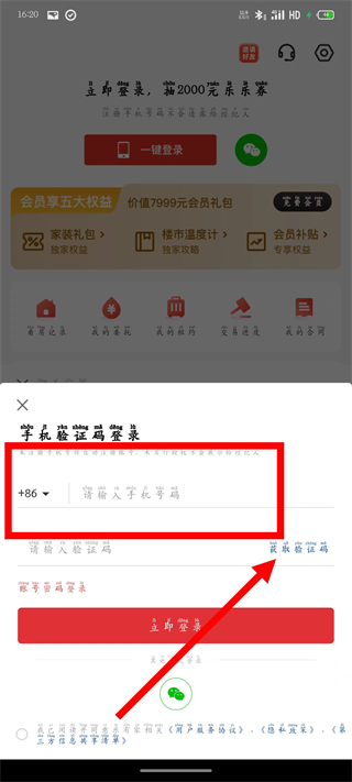 2、在个人中心页面,点击一键登录,进入登录页面。