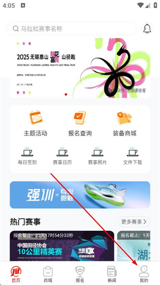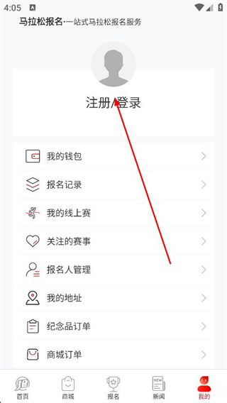 1、打开马拉松报名APP,点击底部导航栏我的选项。