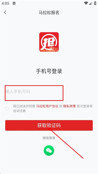 3、在手机号登录页面,输入手机号,并获取验证码。