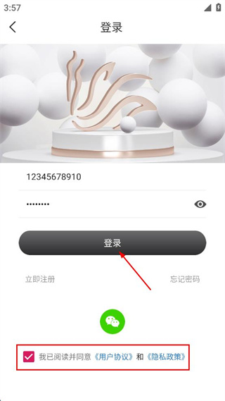 4、勾选同意用户协议和隐私政策,点击登录按钮。