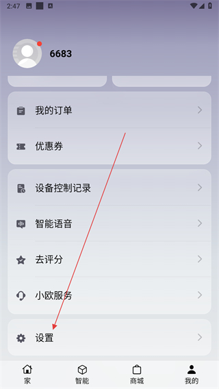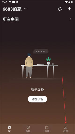 1、打开智家365app,点击底部导航栏最右侧的我的选项,进入个人相关界面。