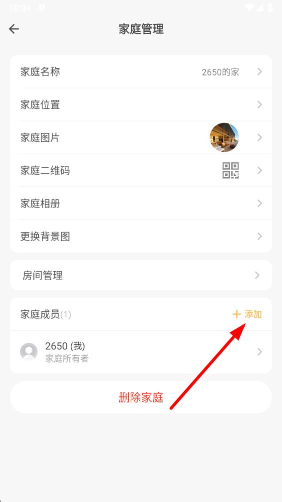 4、在家庭详细管理界面中,找到家庭成员板块,点击右侧的添加按钮。