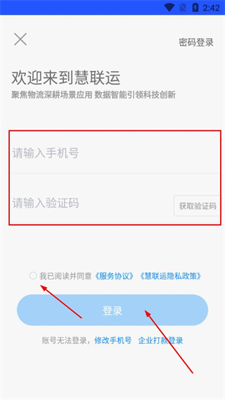 3、输入手机号、验证码,勾选后点击登录,完成账号注册。