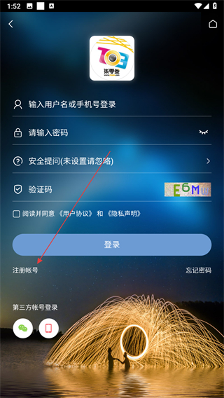 2、进入登录页面之后,点击注册账号选项,进入注册页面。