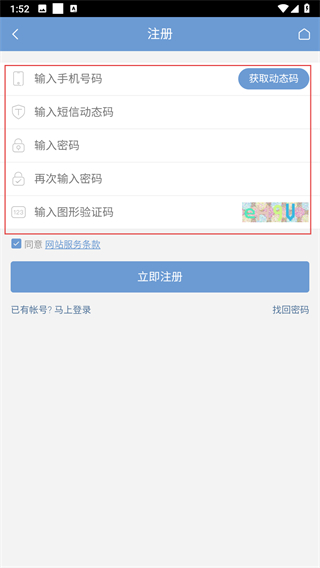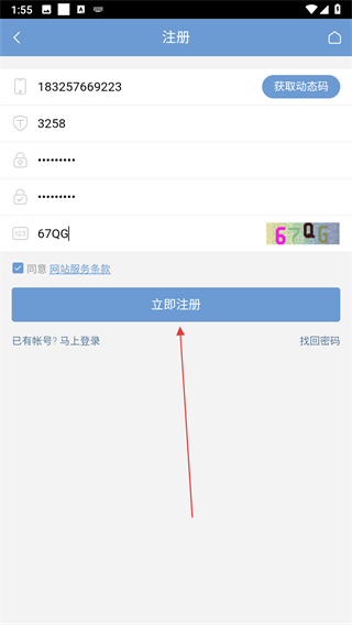 4、勾选同意网站服务条款,点击立即注册按钮,即可注册。
