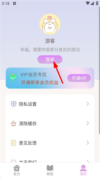 1、在恋爱情话助手首页,点击右下角我的选项,进入个人页面。