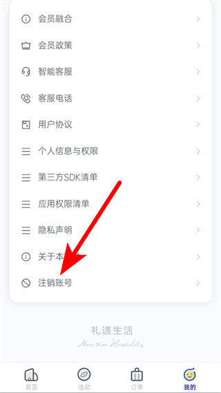2、在个人页面中,找到并点击注销账号选项,进入注销账号说明页面。