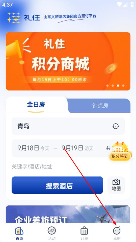 1、打开银座酒店App,点击底部导航栏中的我的。
