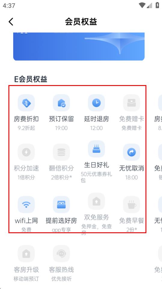 3、进入会员权益页面,查看E会员等各类会员权益内容。