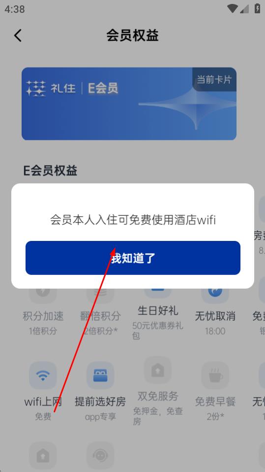 4、点击权益,会有更加详细的权益信息,点击我知道了关闭弹窗,继续查看其他权益信息。