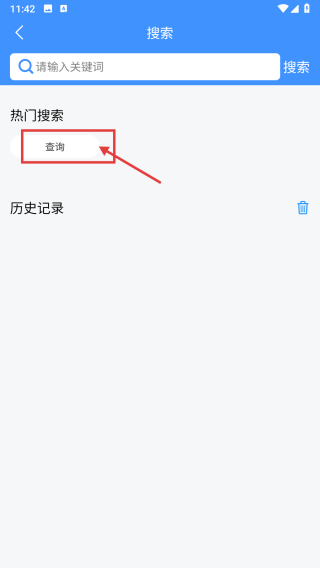 2、在搜索页面,点击热门搜索下的查询选项,进入查询结果页面。