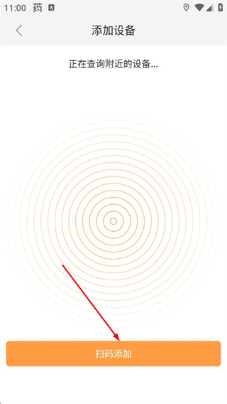 2、在添加设备页面点击扫码添加,进入扫描二维码页面。