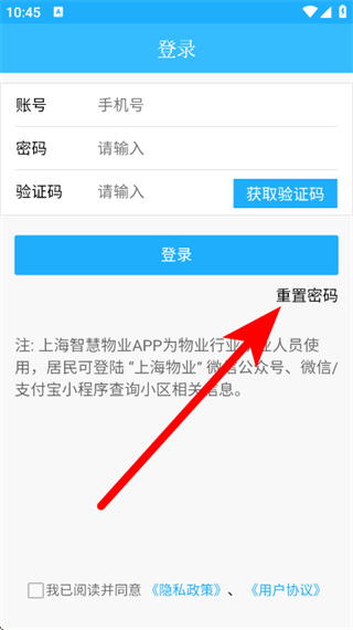 3、在登录页面,点击重置密码,进入密码重置页面。