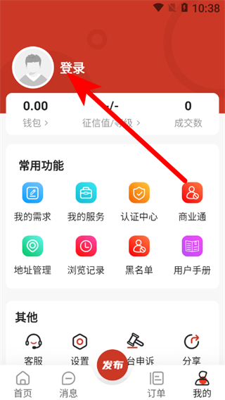 2、在个人中心界面,点击登录按钮,进入登录注册页面。