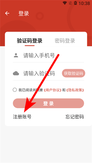 3、在登录注册页面,点击注册账号选项,进入注册流程。