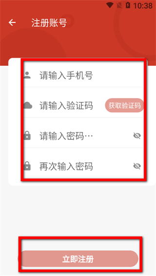 4、依次输入信息并再次确认密码,点击立即注册按钮,即可完成注册。