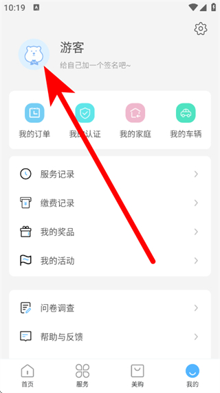 2、在我的页面,点击头像游客区域。