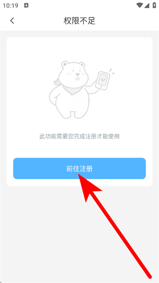 3、在权限不足页面,点击前往注册,进入注册页面。